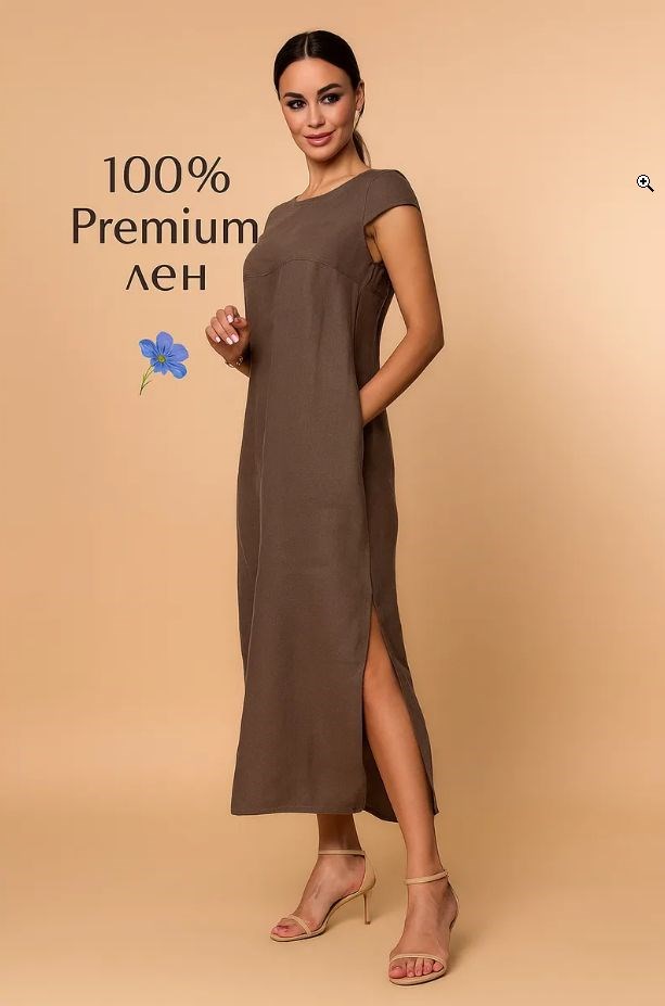 Стильное и женственное платье из льняной ткани кофейного оттенка внесёт разнообразие в ваш летний гардероб. Модель длины макси дополнена короткими рукавами-крылышками, округлым вырезом горловины и боковыми карманами в швах. Платье на кокетке, с удобными разрезами по бокам, благодаря которым изделие не будет сковывать Ваших движений при ходьбе. На спинке небольшая кулиска с резинкой по линии талии. В составе ткани 100% лён - такая модель платья всегда комфортна и приятна к телу.