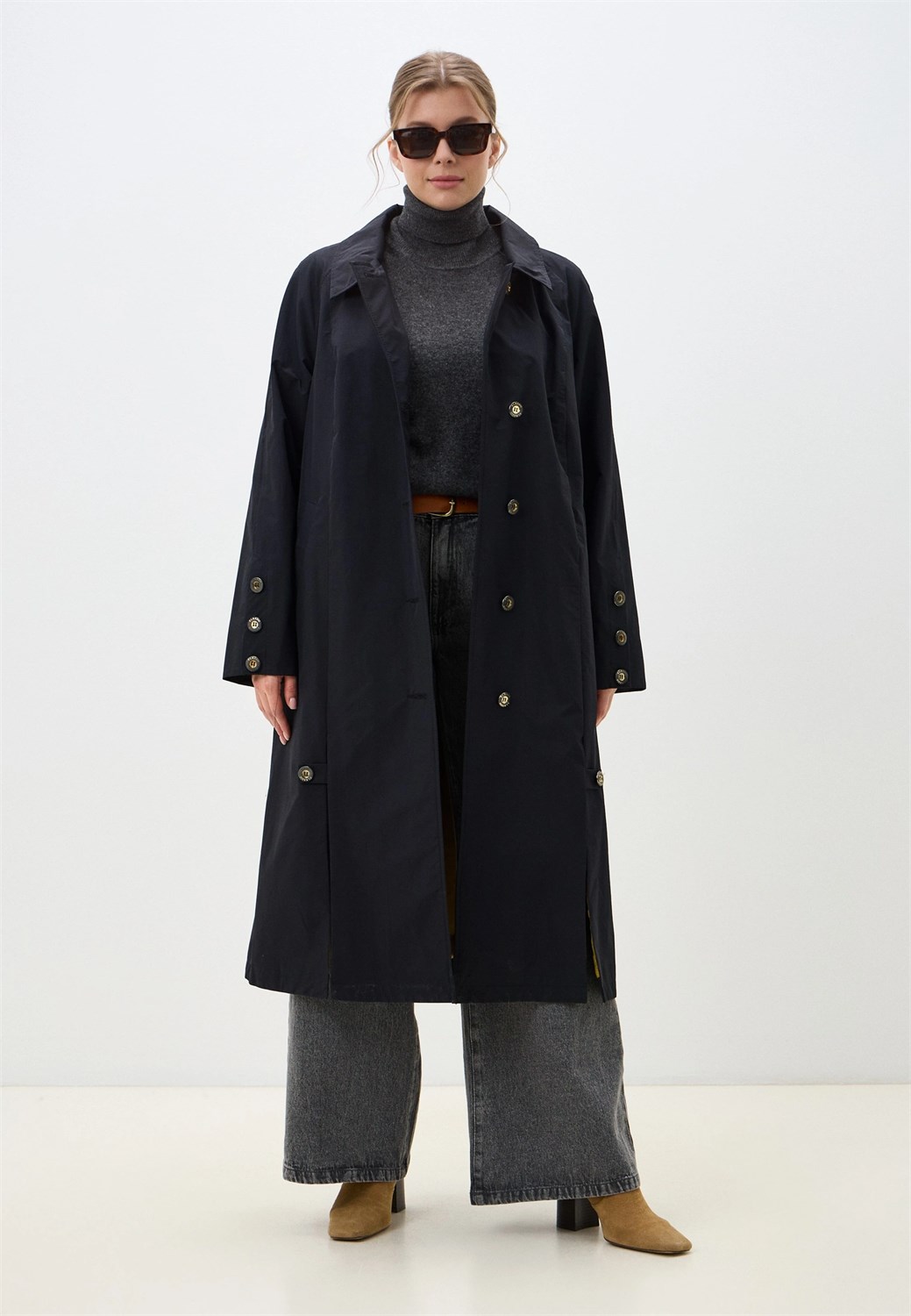 Плащ выполнен из нейлона. Модель трапециевидного кроя дополненная поясом. Детали: застежка на пуговицы, 2 внешних кармана, отложной воротник.