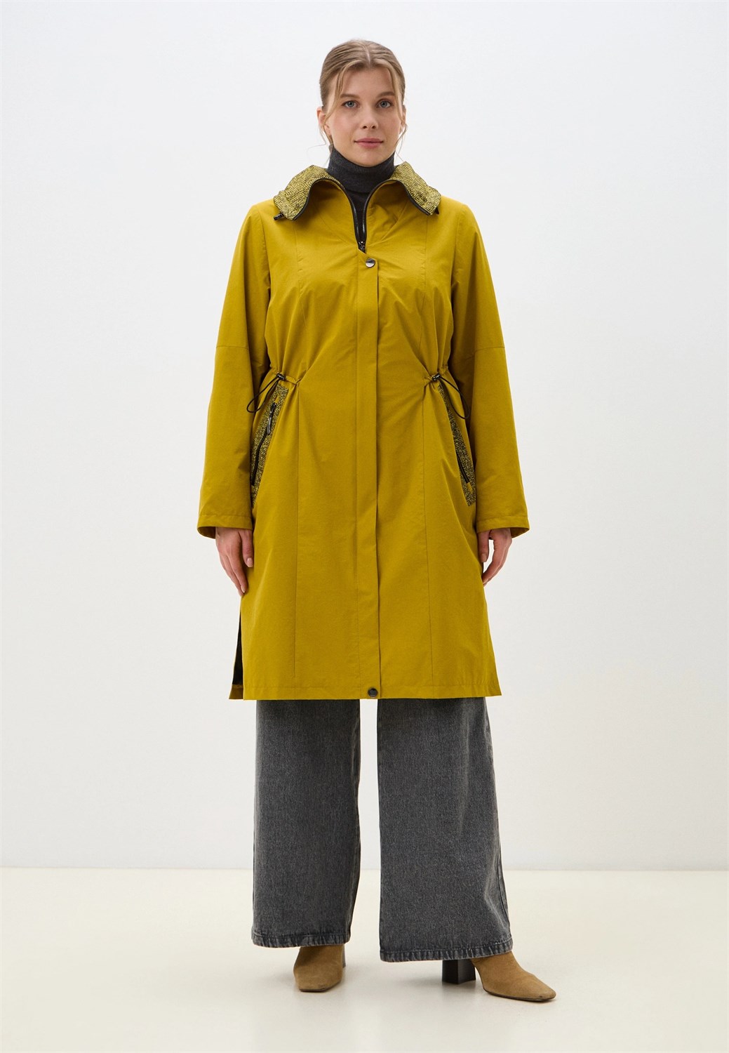 Плащ выполнен из смесового материала с текстильной подкладкой. Детали: застежка на молнии и кнопки, отложной воротник, 2 боковых кармана, регулируемая кулиска на талии.